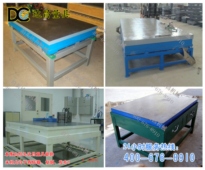 五、鉗工平板(鉗工平臺)材料及處理:材料為高強度鑄鐵HT200-300,工作面硬度為HB170-240,經過兩次人工處理(人工退火600-700度和自然時效2-3年)使該產品的精度穩定,耐磨性能好,下列產品材料和處理除球墨鑄鐵外均相同。